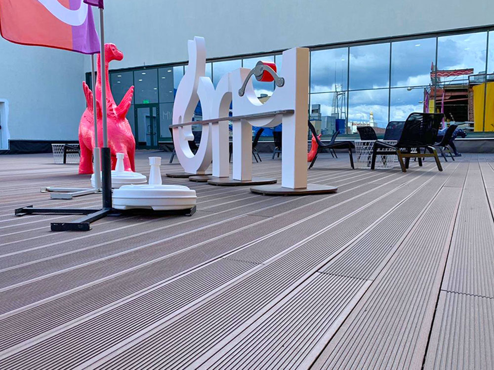 Доска DECKRON разработана специально для жаркого влажного климата, что позволяет сохранять первозданных вид как можно дольше, не разрушаясь от влажного и соленого воздуха. Так-же доска устойчива к выгоранию и выцветанию, не деформируется и устойчива к пониженным температурам. Так-же для реализации проекта были использованы: